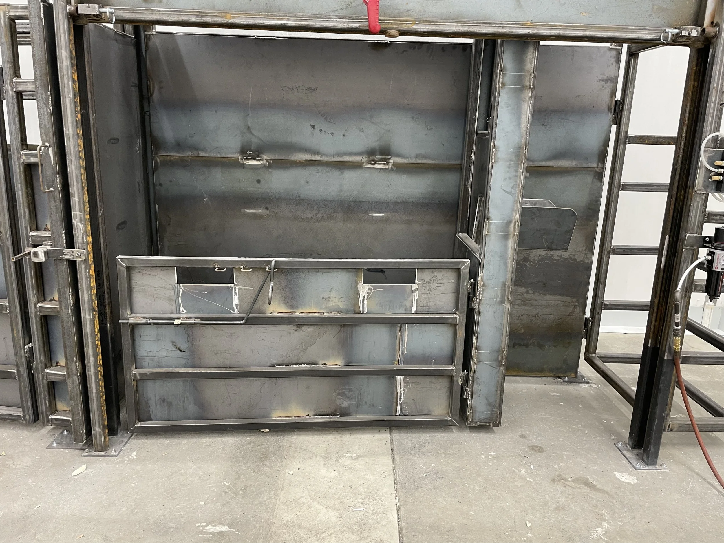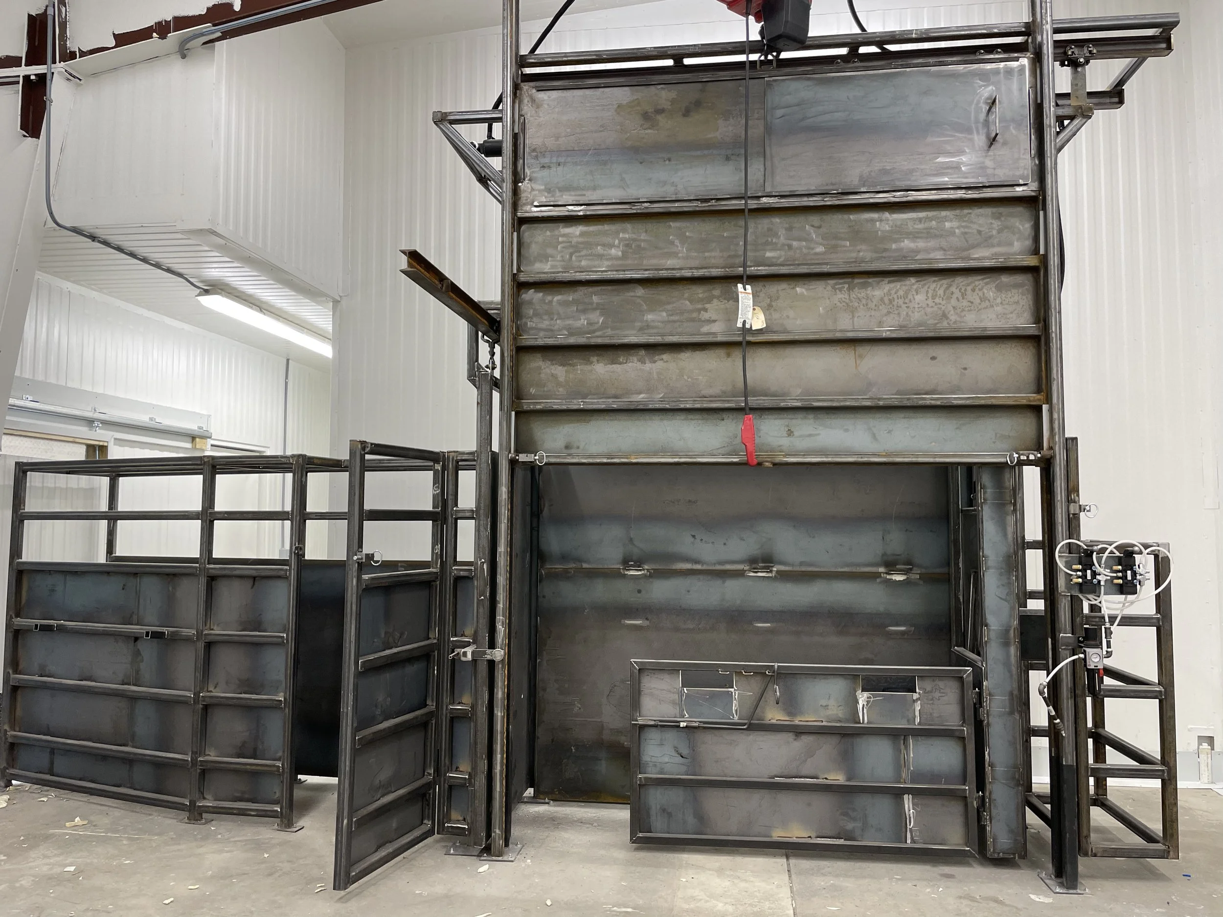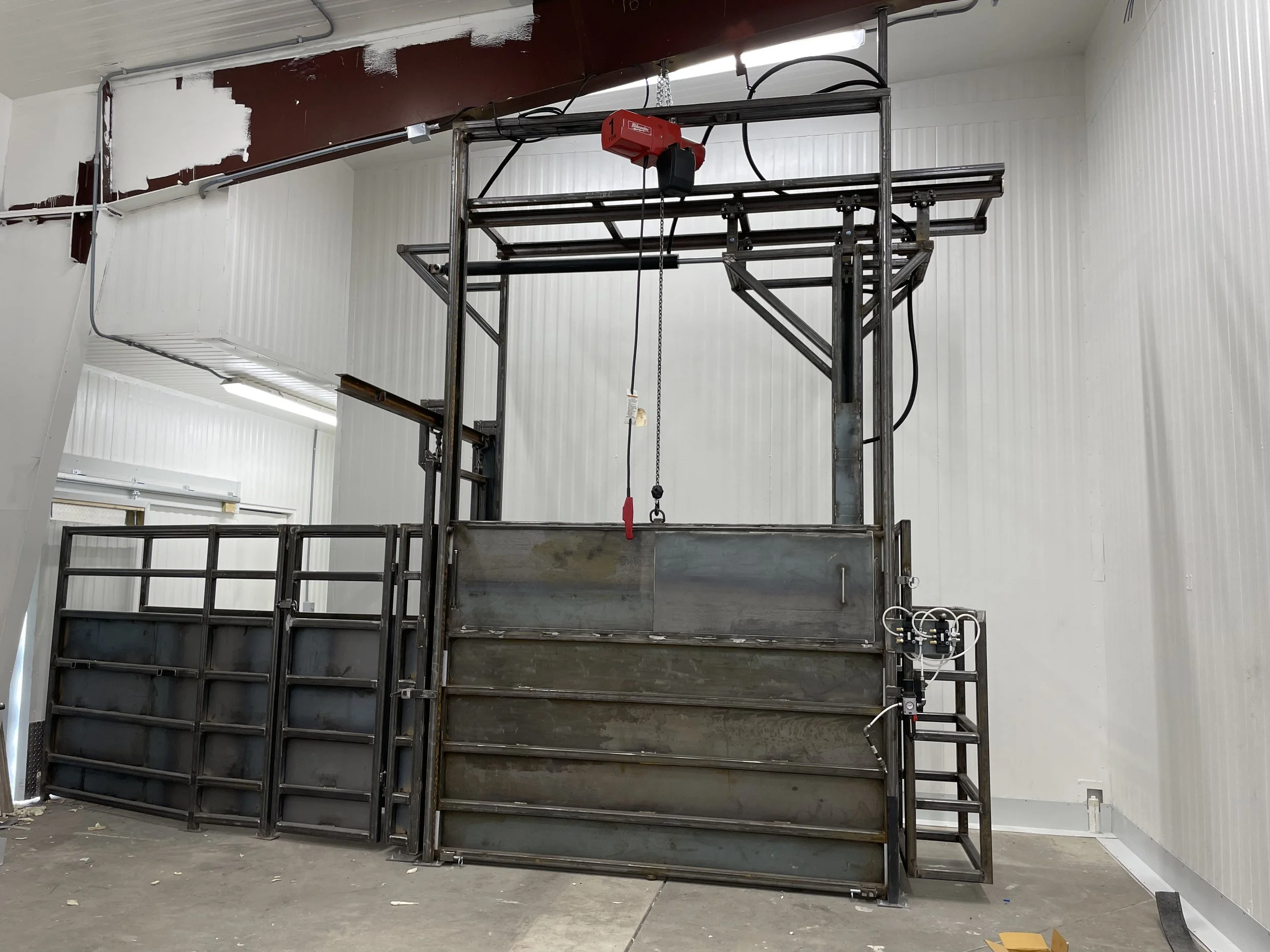 Don’t force cattle to the head catch, take the head catch to the animal. Our clients process bison, cattle, sheep/lamb, and hogs all in the same knocking box.